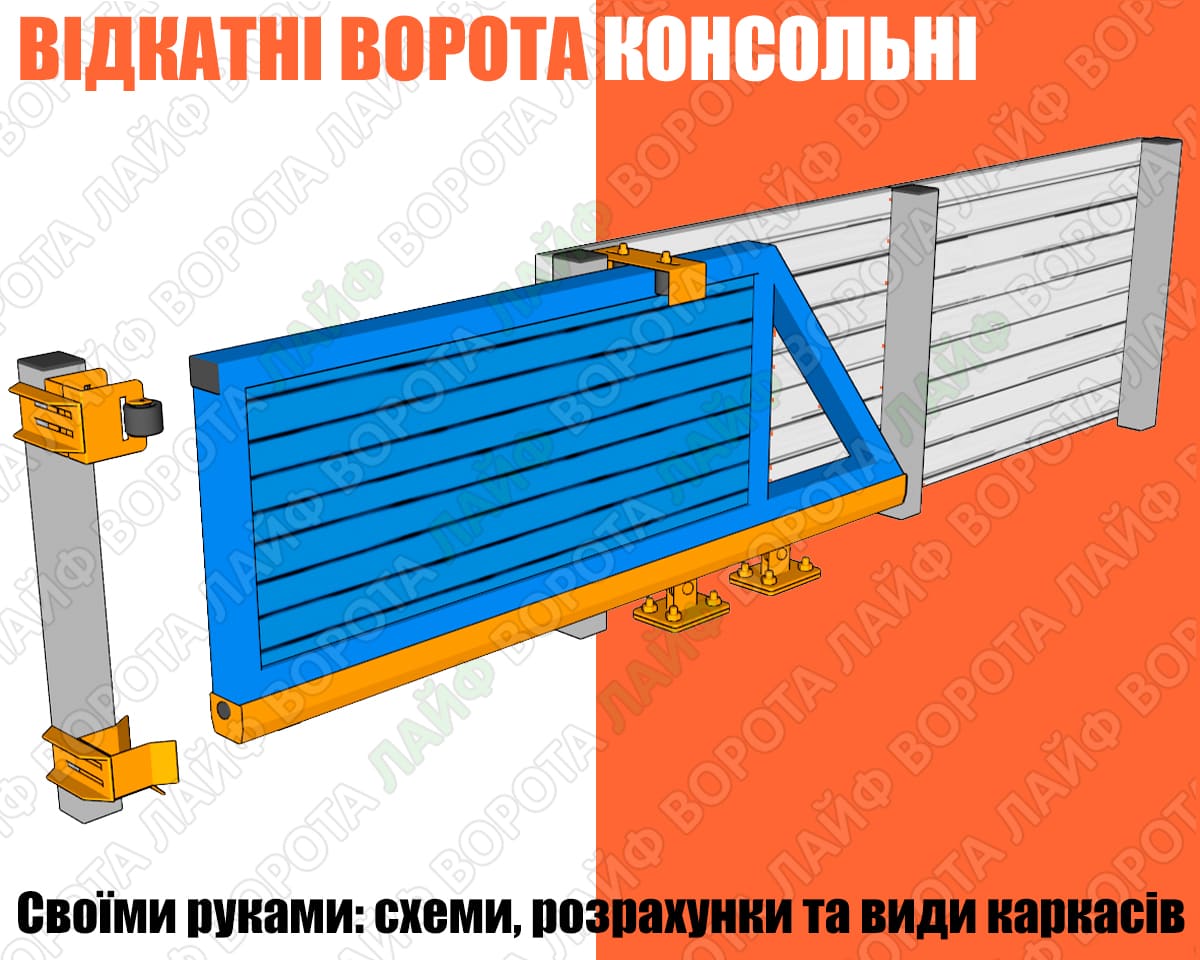 Детальні інструкції, креслення, схеми та комплектуючі для самостійного виготовлення відкатних воріт ви знайдете в інтернет-магазині Ворота Лайф Україна.