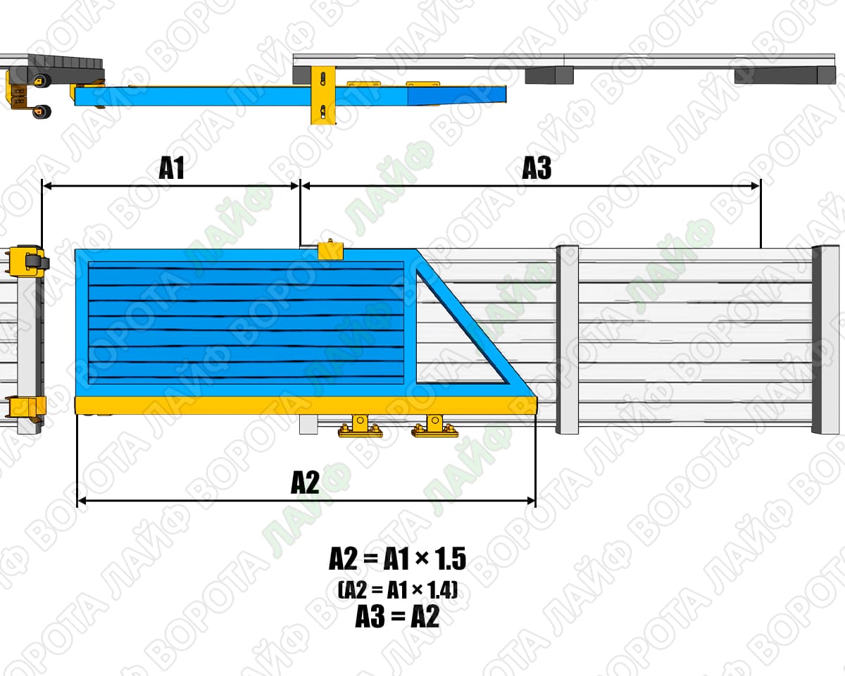 Для того щоб конструкція була стабільною і не провисала під власною вагою, каркас завжди виготовляється довшим, ніж фактична ширина проїзду. Це необхідно для створення правильного «плеча» важеля.