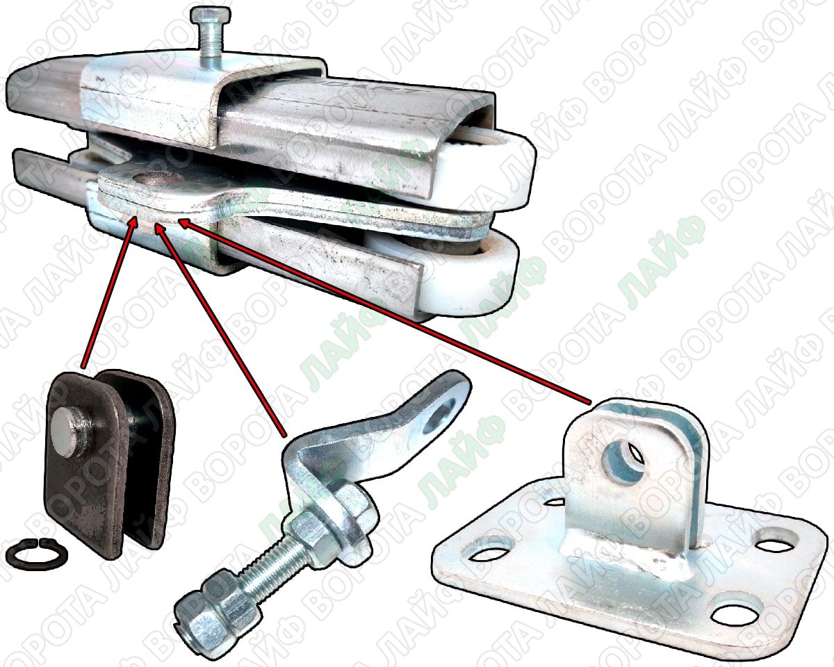 Спеціальна фурнітура створюється для самостійного монтажу підвісних воріт і конструкцій вагою до 500 кг. Вона забезпечує надійність, простоту встановлення та довгий термін служби.