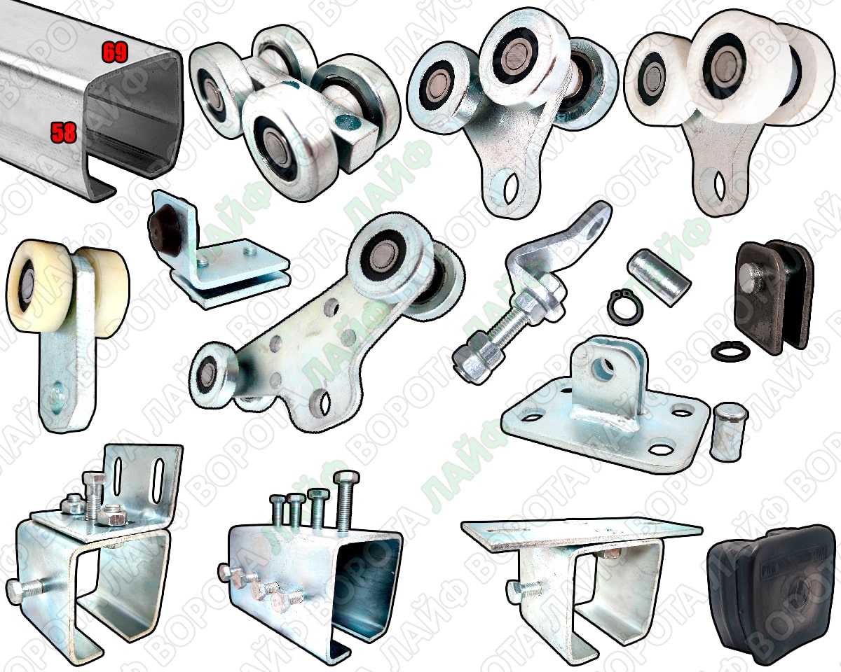 Повний асортимент комплектуючих та фурнітури для підвісних зсувних конструкцій до 500 кг на базі напрямної 69 × 58 мм з гарантією виробника доступний через офіційний інтернет-магазин Ворота Лайф Україна в категорії: Фурнітура для підвісних відкатних воріт і конструкцій