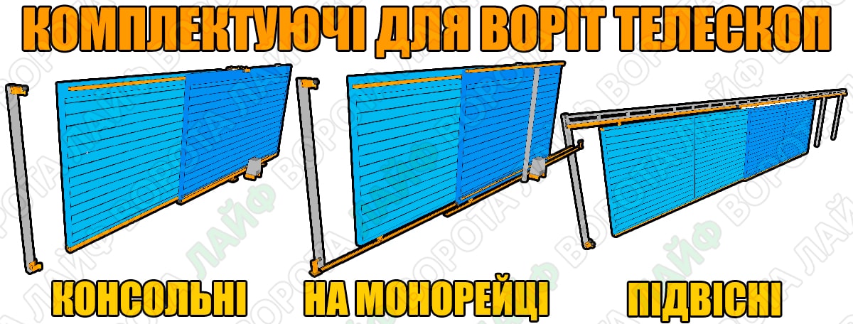 Існує 3 види телескопічних воріт або як їх ще називають відкатних воріт типу слайдер: