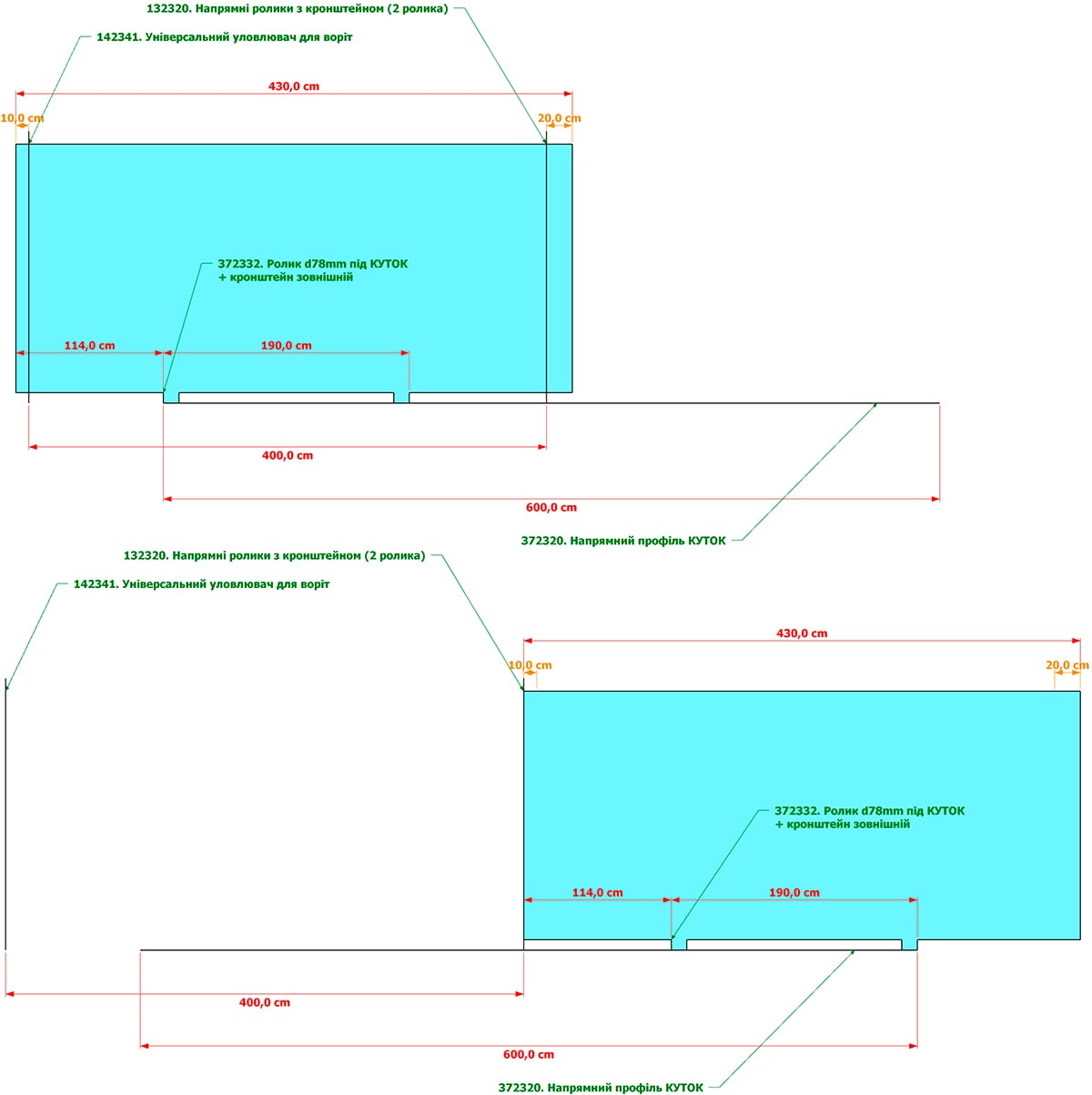Два варіанти як приклад для ширини в’їзду 4 метри: