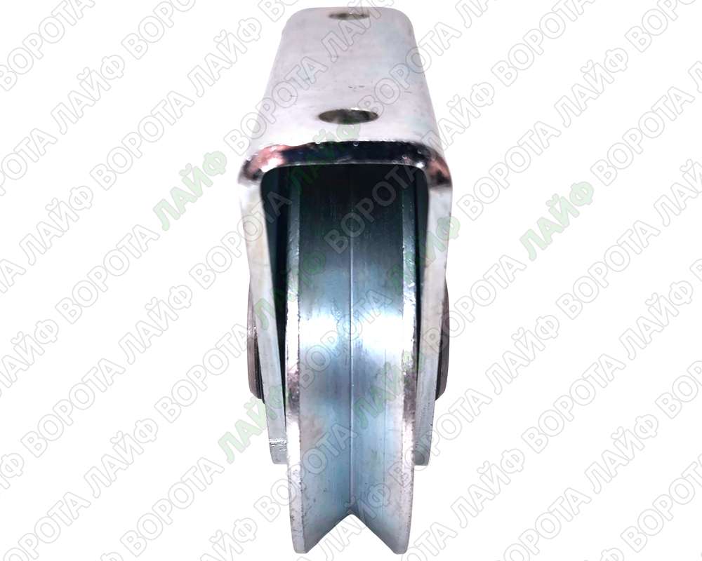 Усиленный оцинкованный опорный ролик диаметром 98 мм с внешним крепёжным кронштейном предназначен для откатных ворот и сдвижных систем, перемещающихся по направляющему уголку 90°, монорельсу или специальному Дельта-профилю. V-образная канавка ролика обеспечивает надёжное сцепление с направляющей, плавный ход створки и отсутствие боковых люфтов даже под высокой нагрузкой.